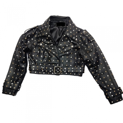 Leather Ladies Jacket Made from Sheep Leather Added Studs On Jacket Small And Beautiful Studs Original YKK Zip Added Premium Buckles Feels luxurious to wear Available in different colors