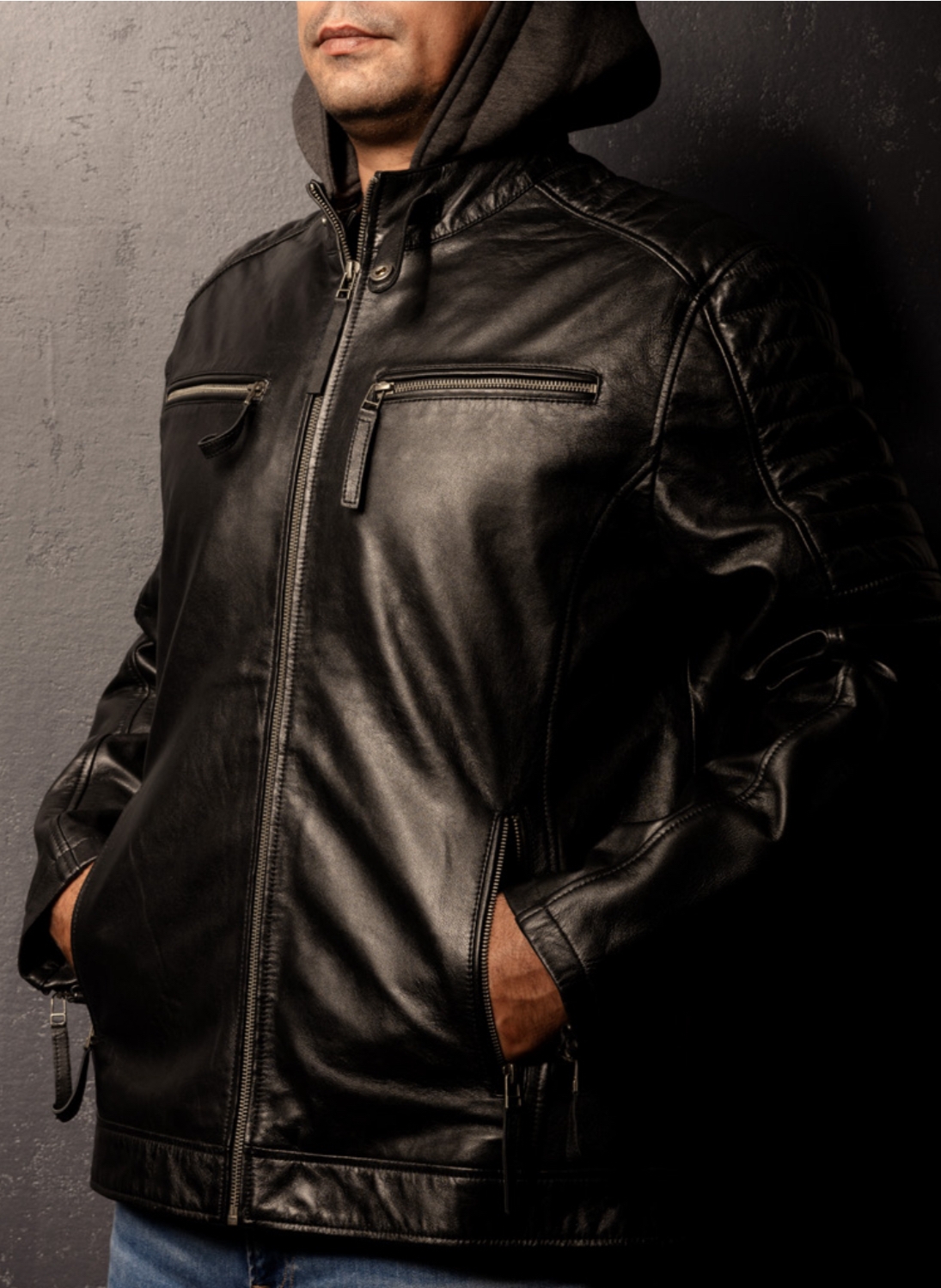 LEATHER MENS JACKET Made from Sheep Leather Added High GSM Fleece Hood Original YKK Zips Feels luxurious to wear AVAILABLE IN ALL COLORS AND SIZES
