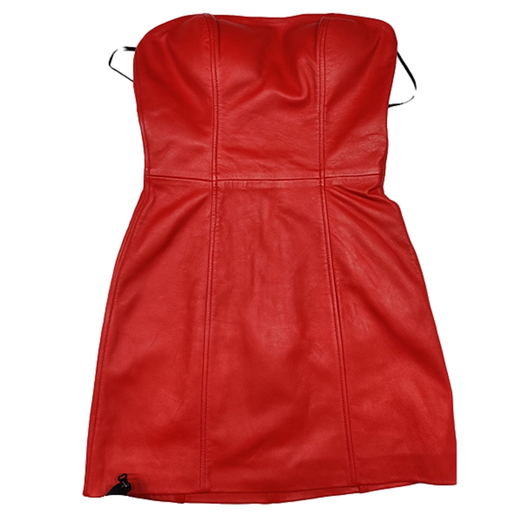 LEATHER DRESS Paper Firm On Sheep Leather Premium Quality Leather With Firm Added Ribbon on Shoulders Added YKK Zip At Back AVAILABLE IN DIFFERENT COLORS AND SIZES